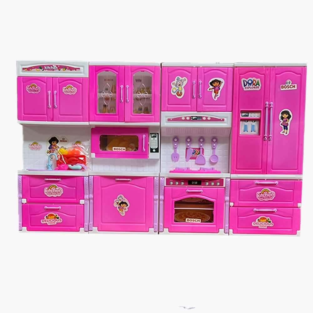 ست آشپزخانه کودک دورا مدل Bosch یک مجموعه رنگارنگ و هیجانانگیز است که کودک را وارد دنیای نقشآفرینی میکند. کودک بعد از دیدن رنگ صورتی و طراحی جذاب این ست، با انگیزه وارد بازی میشود و نقش آشپز را اجرا میکند. این مجموعه چهار بخش اصلی مثل یخچال، مایکروویو، اجاق گاز و سینک ظرفشویی دارد و هر بخش محیطی شبیه آشپزخانه واقعی را برای کودک ایجاد میکند.
